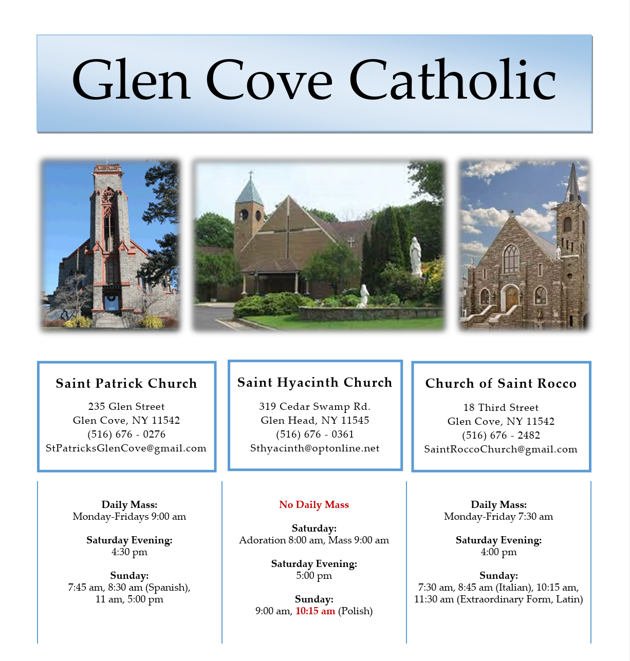 At Glen Cove Catholic, our parish bulletins are your go-to source for the latest news, events, and inspiration. Each week, we share important updates, spiritual reflections, and opportunities to connect with our vibrant community. Stay informed and engaged with us! Click on a recent date below to download.